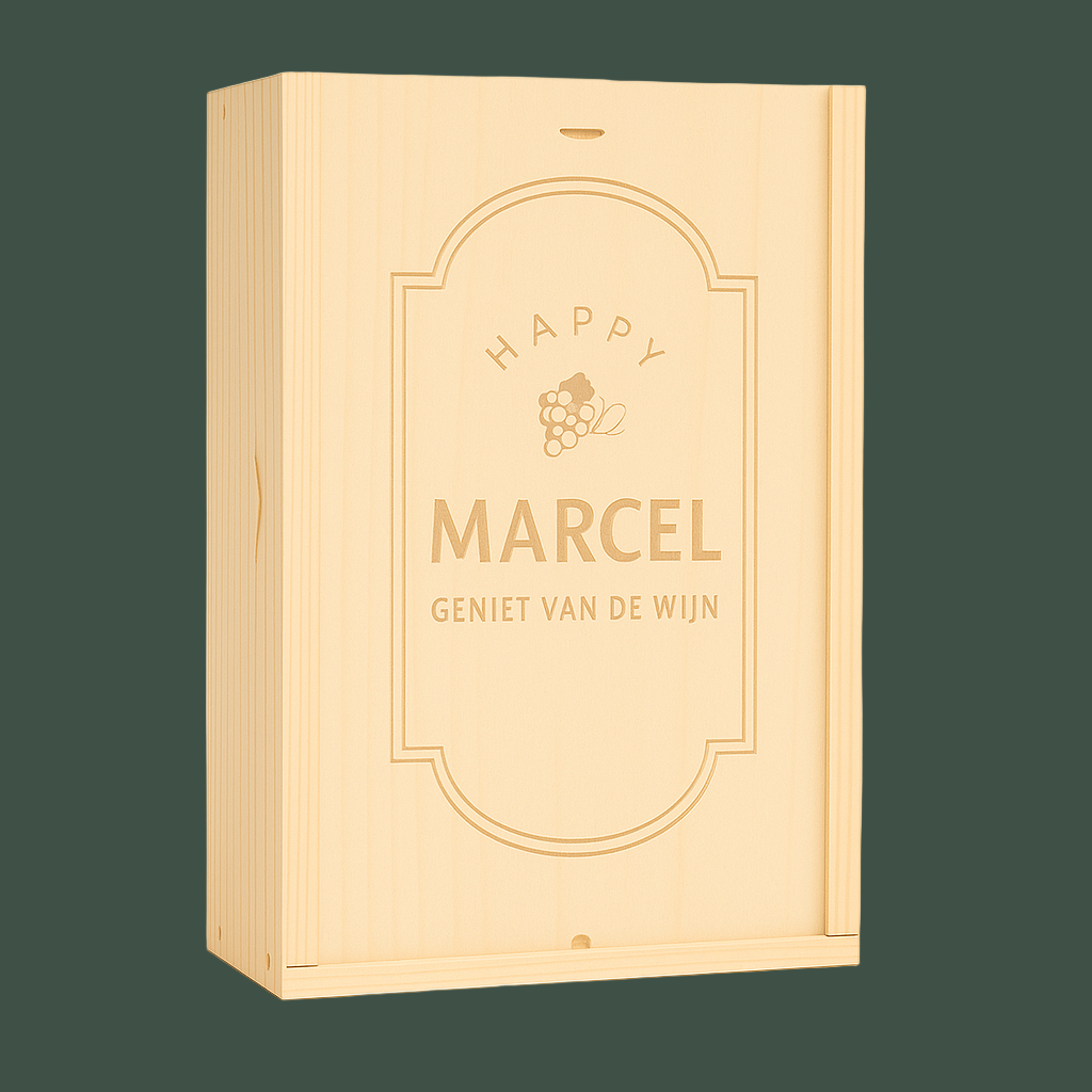 Maak elk cadeau extra bijzonder met deze luxe houten wijnkist voor twee flessen wijn. De kist wordt persoonlijk voor jou gegraveerd met een naam, datum, logo of persoonlijke boodschap op de deksel. Perfect voor verjaardagen, jubilea, bruiloften, of als uniek relatiegeschenk.